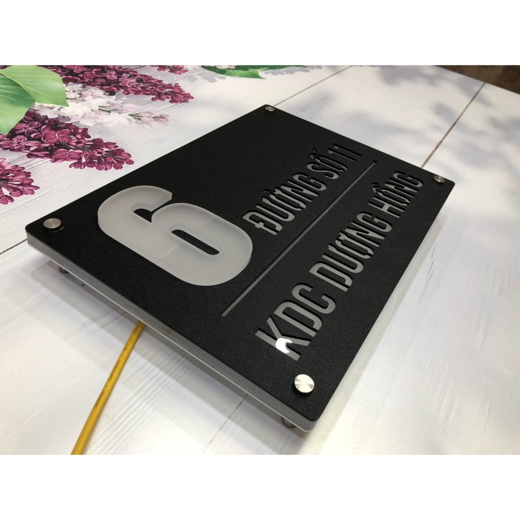 Biển Số Nhà. Có đèn LED, Mica cháo + Mica màu đen sần, ngoài trời, số nổi đế mica cháo. BSN-QC24H012