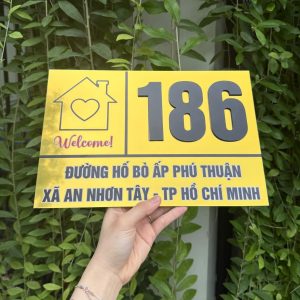Biển số nhà nền alcorest vàng gương, số nổi 10x30cm