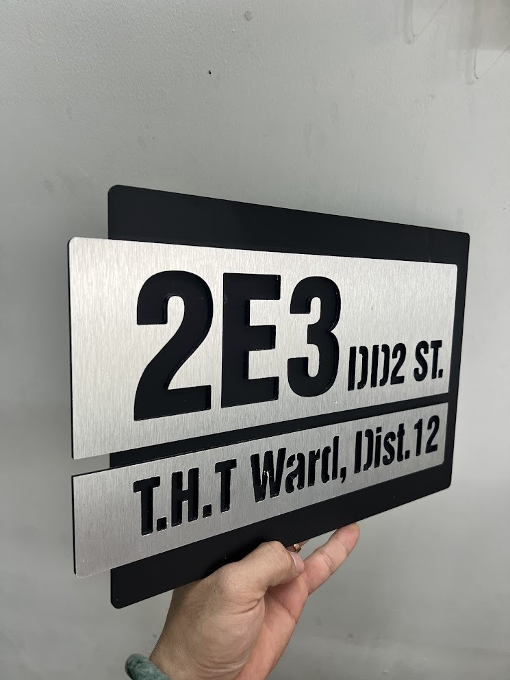 Biển Số Nhà – Nền Mica đen + nội dung khắt CNC chìm – BSN-QC24H002